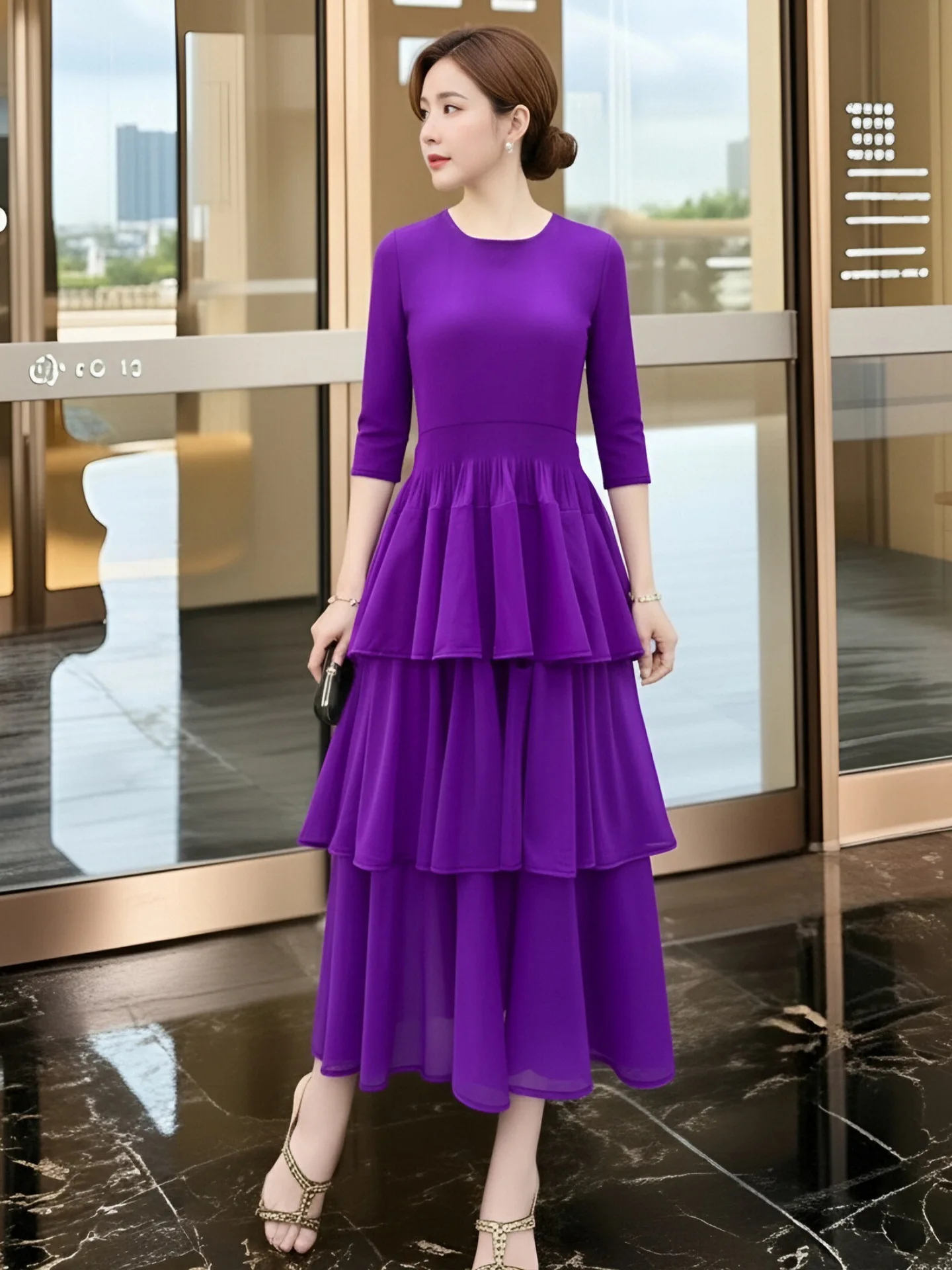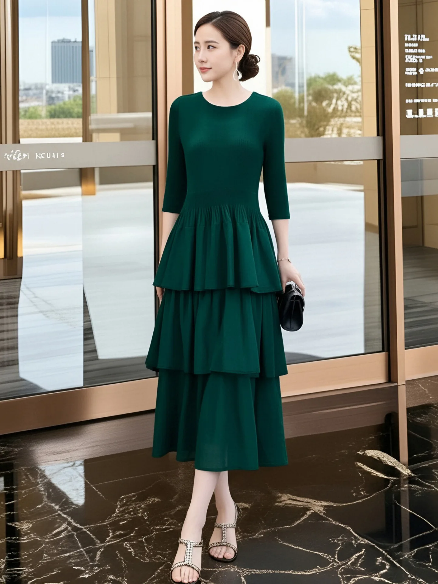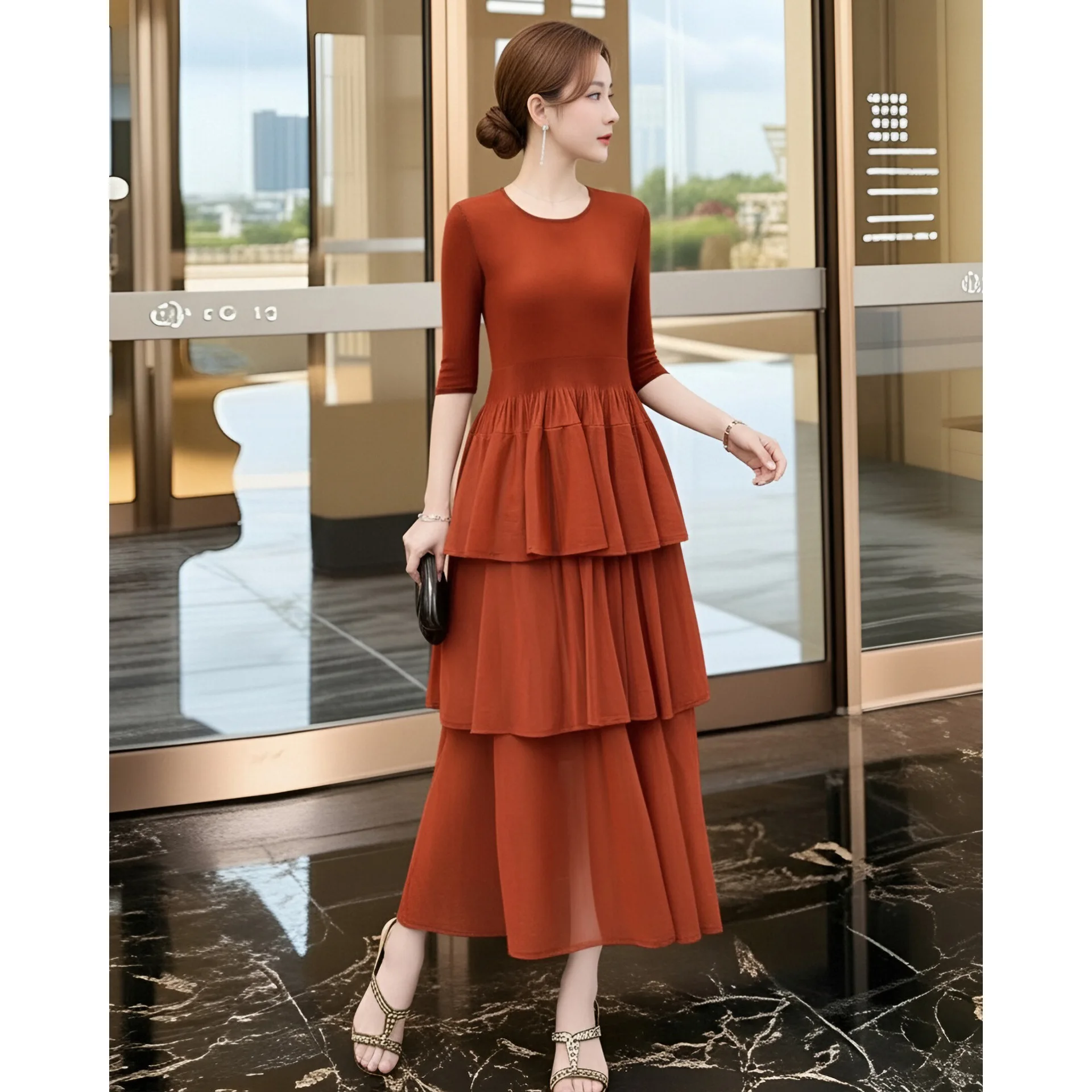 Black Vintage Anti-Static Dress Spring New 2026 Miyake Elegant Women's Cake Skirt Slim-fit Medium Length Pleated